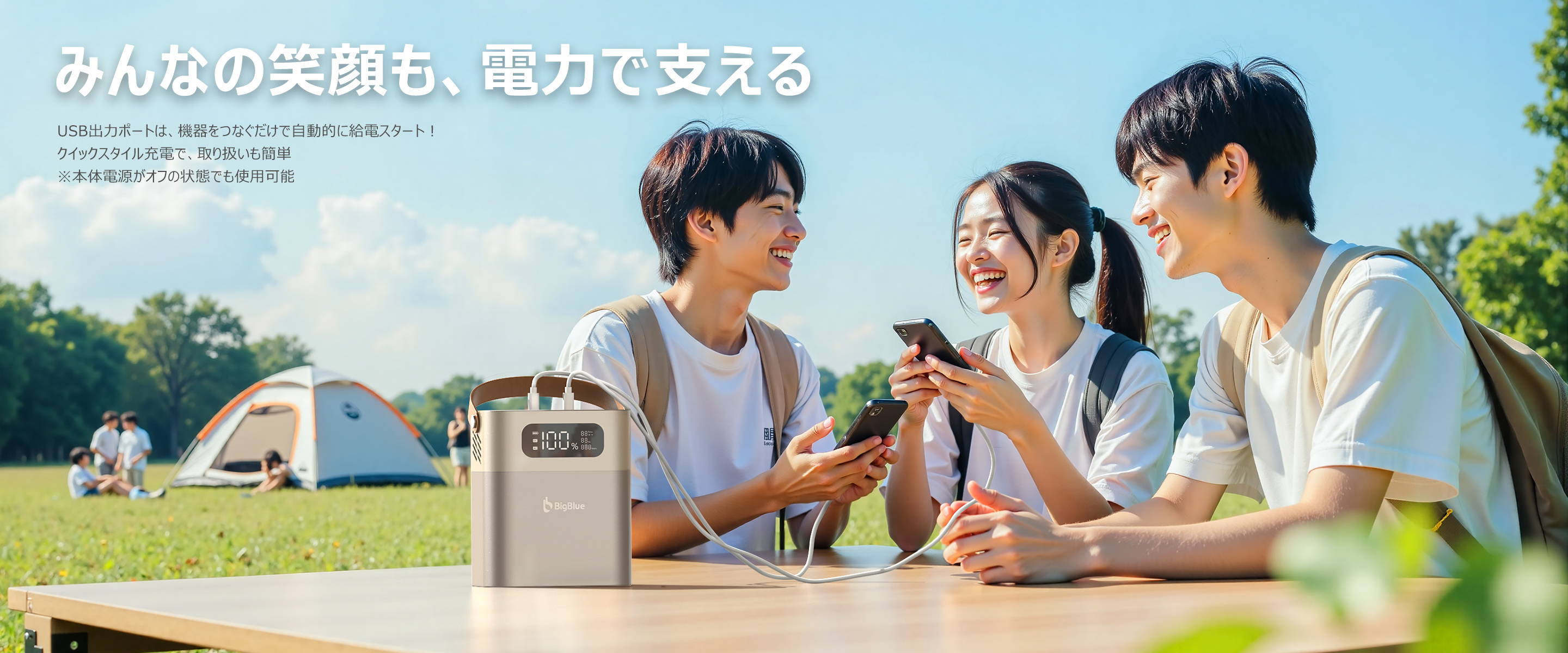 照明やスマホ、キャンプギアまで、必要な電力をしっかりカバー。