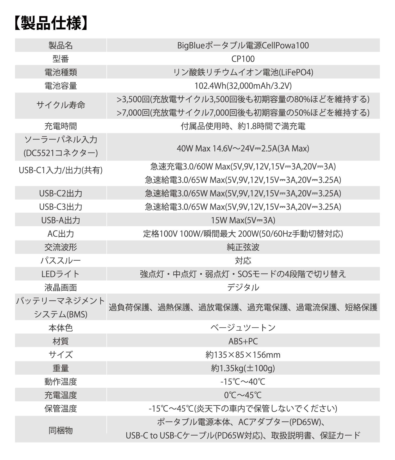 また、DOD(放電深度)100%で3,500回以上の充放電サイクルに対応。これは、毎日使用しても約9年半以上使用可能な計算です。
