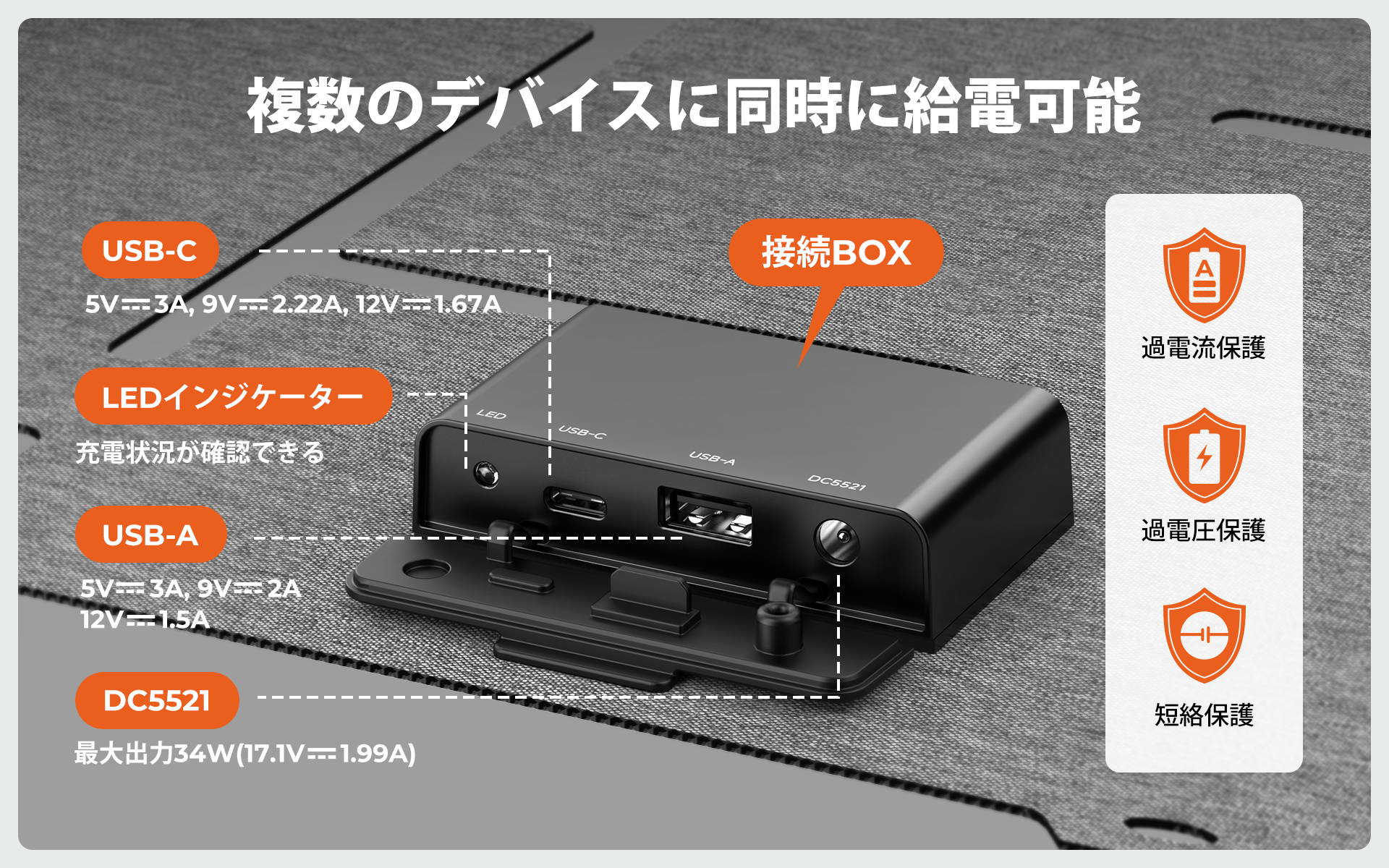 ・パネルが完全に展開されていない状態では、充電が正常に行われない場合があります。