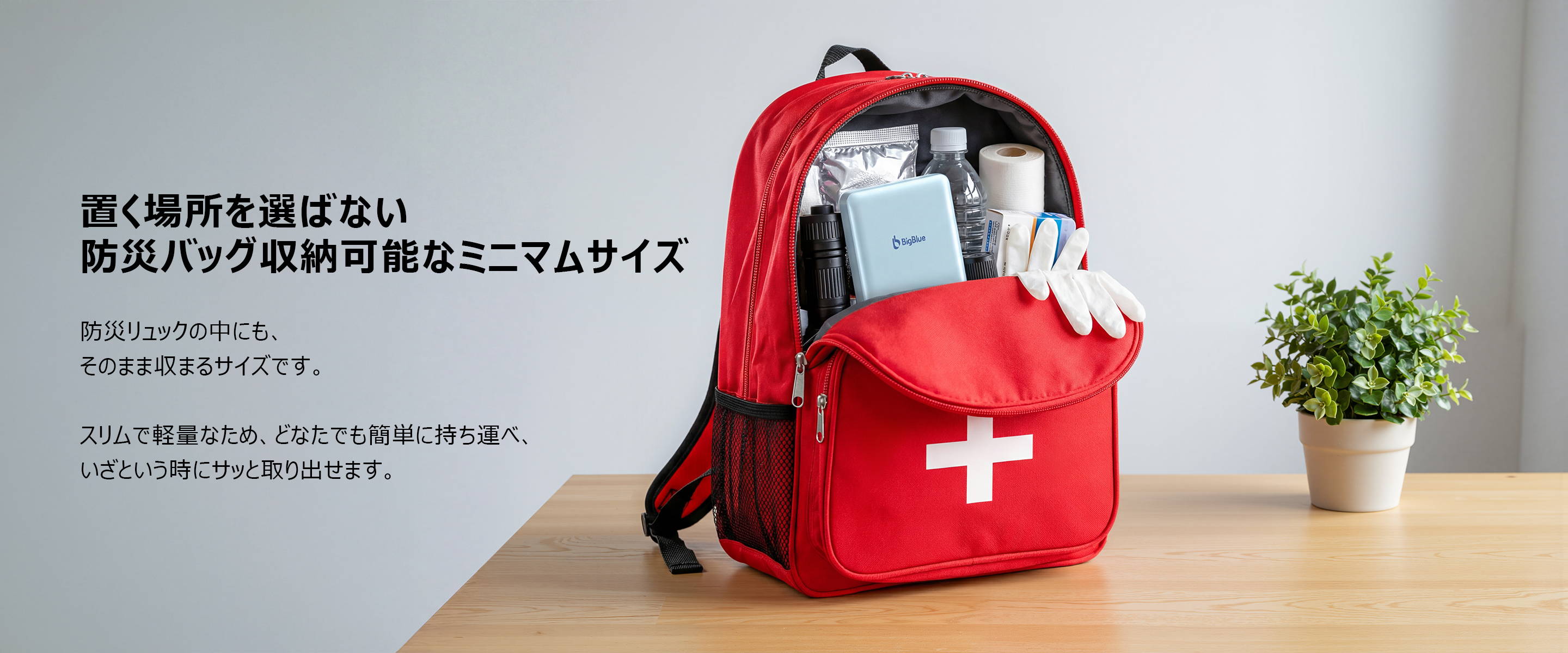 一度充電しておけば、いざという時も安心。
