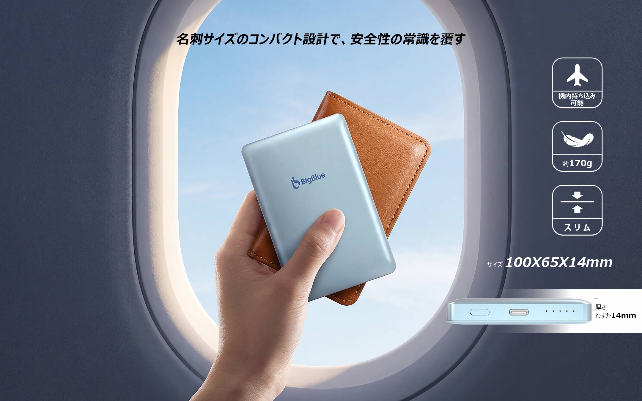 薄型(約100×65×14mm)
