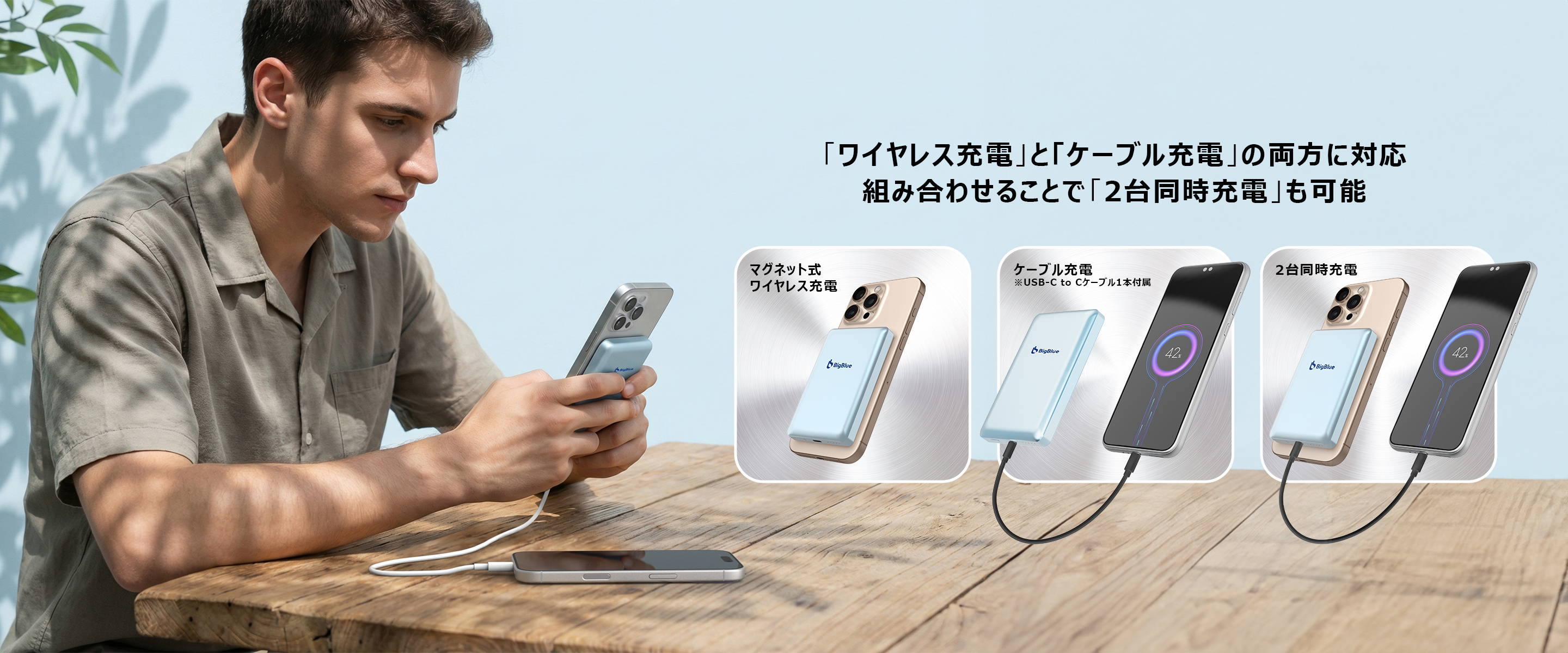 ~ワイヤレス充電・ケーブル充電・ワイヤレス充電+ケーブル充電の3パターン対応~